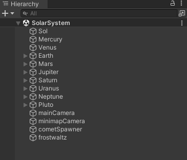 This is a model of our solar system, meant to replicate life scale. While not true 1:1 scale, hopefully it does give that impression. All planets in our system are present, as well as many major moons.